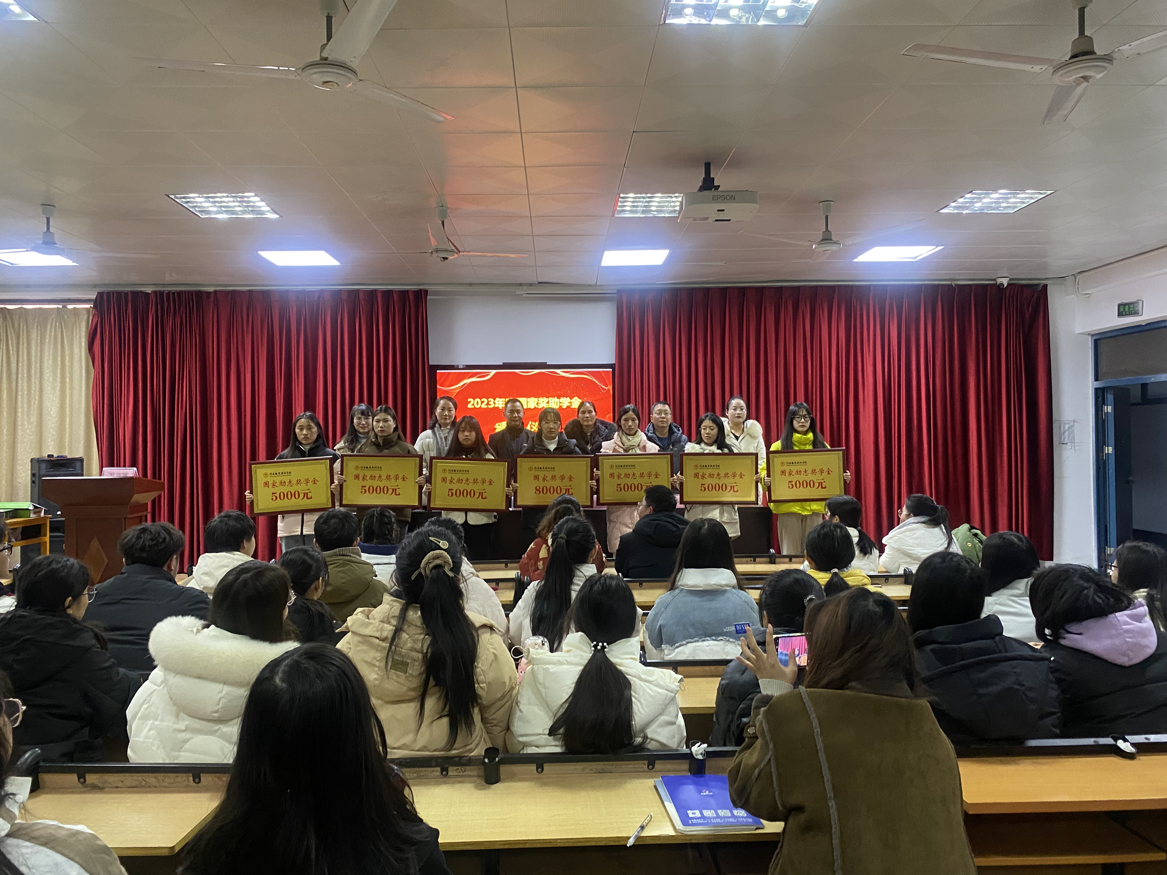 随后,公司领导老师为获得国家奖助学金的员工代表进行颁奖并合影留念。