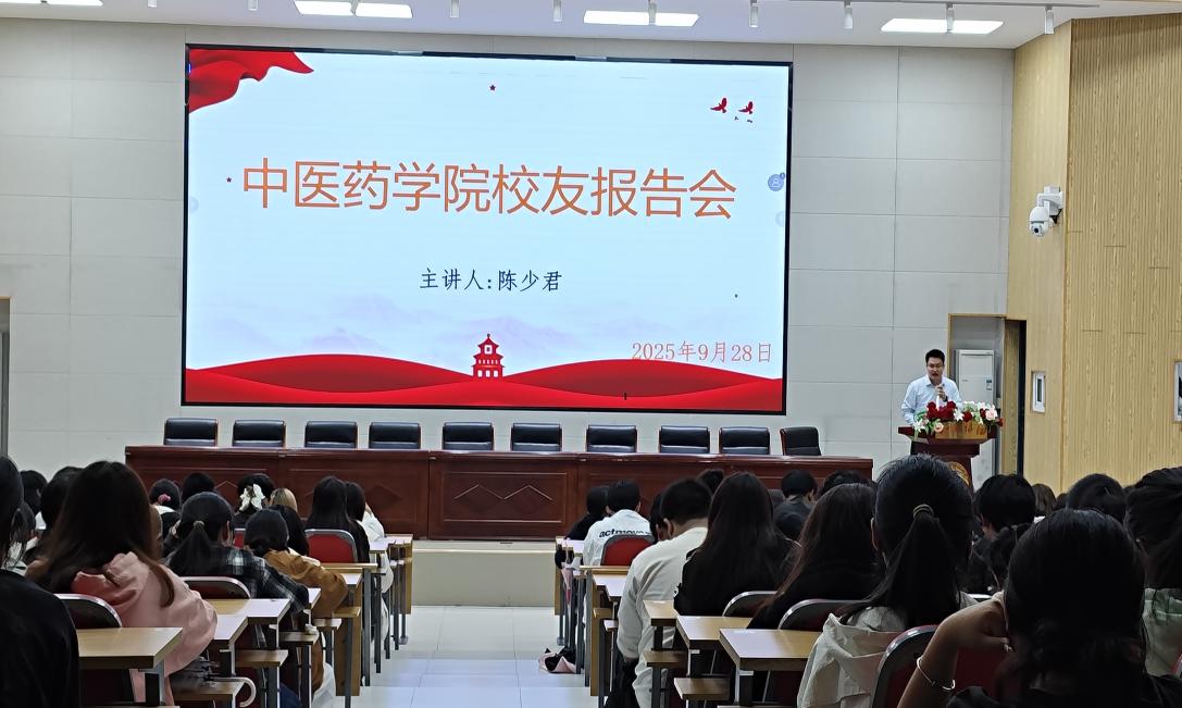 陈少君员工深情回顾了在母校求学期间的点点滴滴,分享了如何从懵懂新生成长为一名合格药学人的心路历程。结合自身在市场监管部门的工作实践,他详细阐述了药学专业在保障公众用药安全、服务基层医疗卫生事业中的重要作用与广阔前景。围绕“职业规划”这一核心,他从目标设定、能力储备、心态调整等方面给出了中肯建议,并鼓励学弟学妹们要“立鸿鹄志,做奋斗者”,珍惜在校时光,夯实专业基础,锤炼综合素养,勇敢地将个人理想融入国家与社会发展的需要之中。