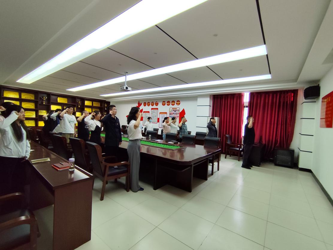 学工党支部全体成员分别投票表决,一致同意7名预备党员转为中共正式党员,由潘梦雨老师带领全体党员宣读入党誓词。