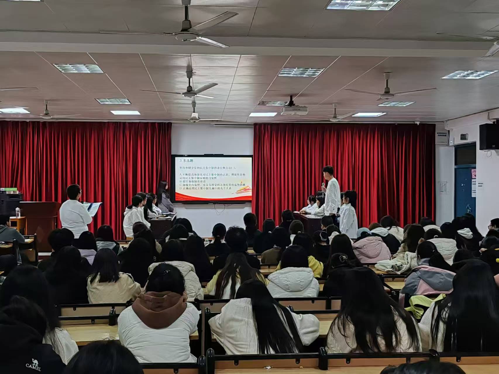 通过初赛环节选拔,共有4个班级代表队脱颖而出,成功晋级到决赛。竞赛内容丰富,涵盖党章党规、党史、习近平新时代中国特色社会主义思想、党的二十届三中全会精神等多方面知识,比赛环节设置精彩纷呈,包括必答题、抢答题、风险题等,题目形式灵活多样。在必答题环节,各代表队选手沉着冷静,思路清晰如流水,准确作答每一个问题。他们凭借着扎实的理论基础,在赛场上展现出强大的实力。在抢答题环节,选手们反应敏捷,风险题环节更是考验选手们的胆识和智慧的时刻,现场欢呼声、掌声此起彼伏,气氛热烈非凡。经过紧张激烈的比拼,各参赛队伍最终成绩揭晓,24级药学2班凭借其出色的表现获得一等奖。
