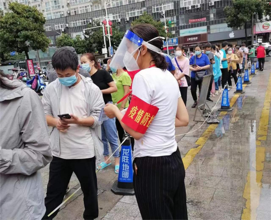 7月26日,根据义阳社区工作要求,早晨5点半紧急安排三名党员志愿者参与新玛特广场全民核酸检测工作。