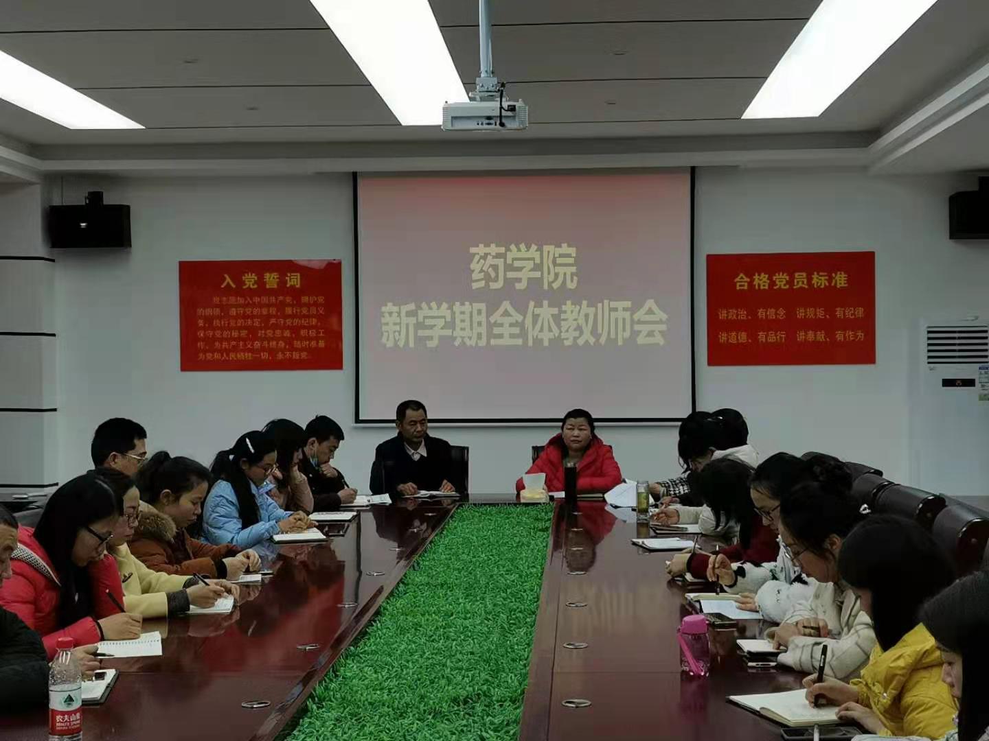 副经理许卫军强调要做好新学期准备工作,要探索药学专业的课程思政建设,进一步加强专业建设和课程团队建设,要积极推进省级精品在线开放课程建设,做好疫情常态化防控、积极落实网络化管理,确保正常教学秩序。