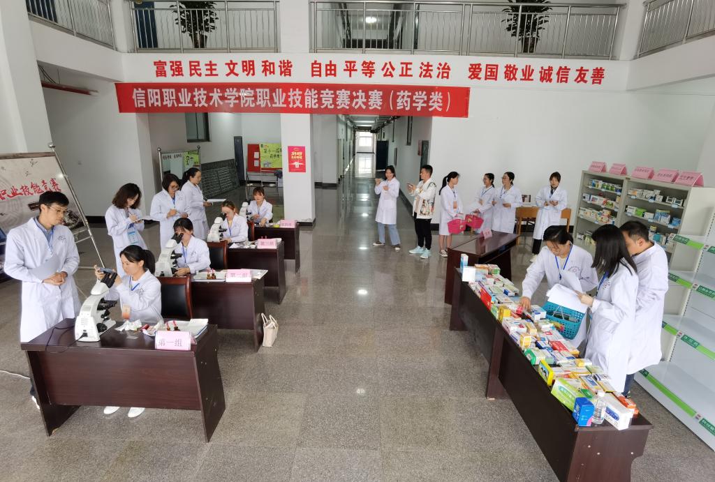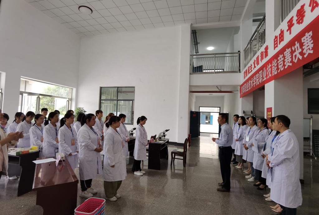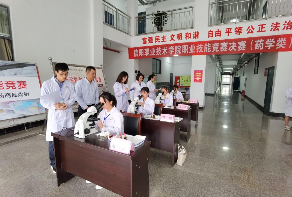 本次赛项包括中药显微鉴别和医药商品购销。中药显微鉴别要求选手在20 min内按要求完成抽选的粉末显微制片、显微观察、绘制显微鉴别特征图,并得出所选粉末的鉴定结论;医药商品购销要求选手在10min内完成模拟药店问药、售药、选药及排药过程。经预赛筛选出霍礼梦雪、张朋飞等十六名同学参加决赛,通过紧张而又激烈的比赛,由六个评委综合评分,评选出一、二、三等奖得主。