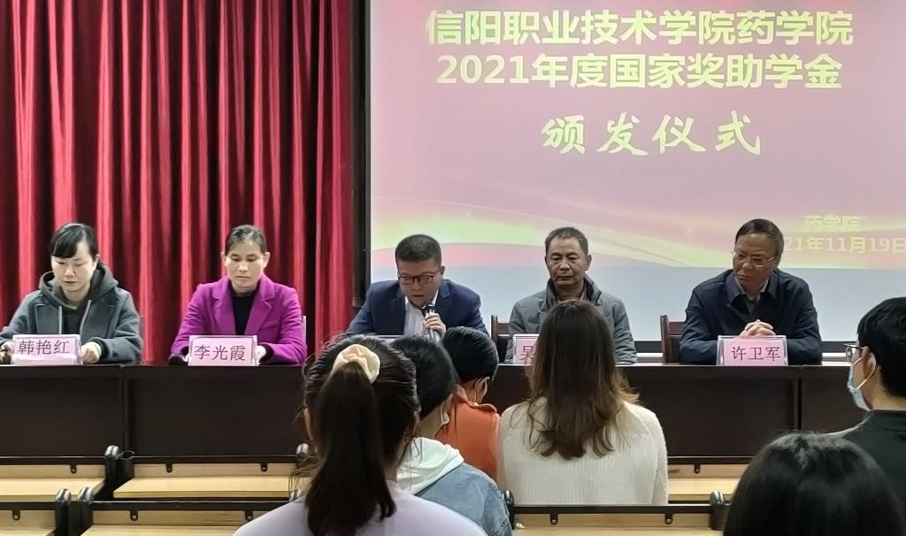 副书记李光霞宣读了2021年度国家奖助学金获奖员工名单。随后,公司领导老师对获得奖助学金的员工代表进行了颁奖并合影留念。接着,国家励志奖学金获得者20级普专药学一班简新瑶和国家助学金获得者21级普专药学五班黄明含分别作为获奖员工代表依次上台发言。他们在发言中一致表达了对国家资助政策的感恩,表示要继续努力学习,掌握专业知识,以优异的成绩为公司争光添彩,做一个有理想、有抱负、有志向的新时代老员工,为建设祖国奉献自己的力量。