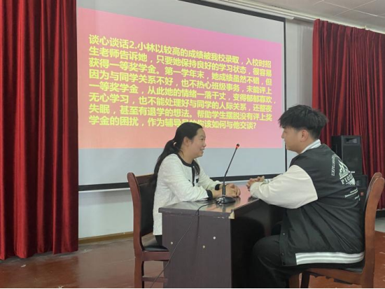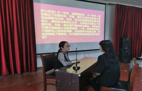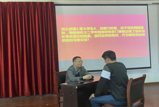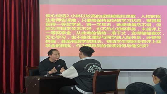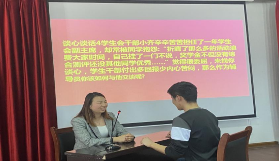 在谈心谈话环节,通过模拟辅导员与员工日常沟通交流的场景,考察辅导员们在帮助员工答疑解惑、化解矛盾、价值引领和心理疏导等方面的方法与能力。