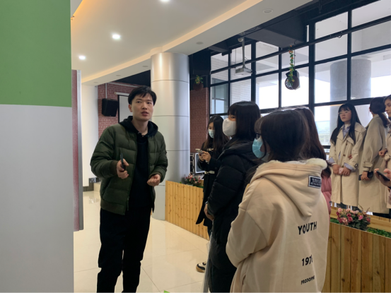 涂老师首先在入口处给所有参观的同学们讲解了老员工创业孵化园的基本功能,总体布局及项目入驻情况。接着,涂老师带领同学们参观了苗圃区、孵化南区、孵化北区、电商区,并介绍了在孵企业的基本情况,讲解了老员工创业的优惠政策,使同学们充分了解国家对于老员工创业的扶持力度。
