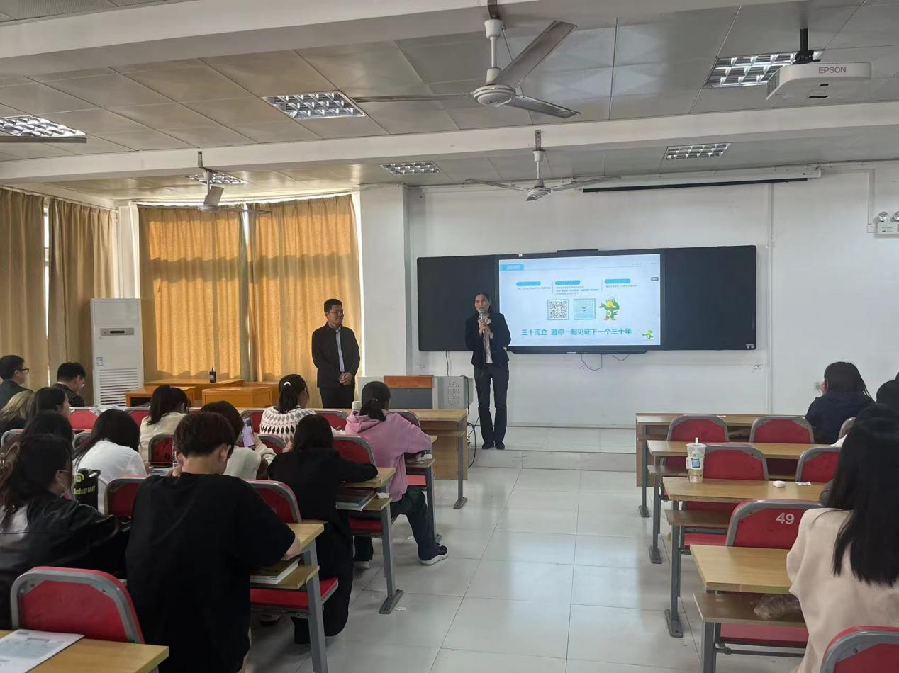 公司河南省片区经理闫磊向在场的学子们展示了公司在医药行业的地位以及未来的发展规划。他详细介绍了公司的研发实力、产品线以及市场布局,让yl9193永利的同学们对华邦制药有了更加全面的认识;他分享了自己在公司的工作经历,特别是在新药研发、临床试验以及市场推广等方面的经验和心得。随后,他从职业生涯规划、成长路径对同学们进行了培训,鼓励yl9193永利的同学们要扎实专业知识,勇于创新实践,为医药事业贡献自己的力量。