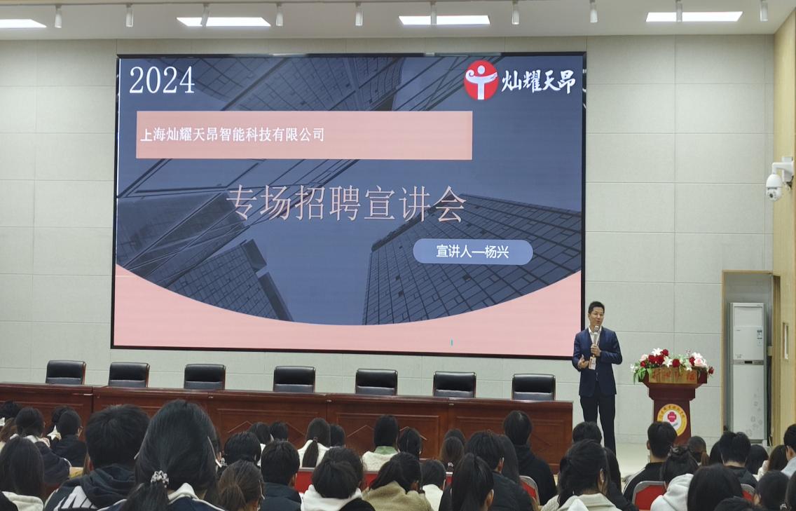 为推进2025届毕业生就业工作,拓宽毕业生就业渠道,11月16日下午,yl9193永利邀请上海灿耀天昂智能科技有限公司、杭州华东医药公司开展校园招聘专场宣讲。宣讲会在医公司3107行知讲堂进行,yl9193永利共300余名员工参与此次宣讲会。宣讲会由公司党总支副书记李光霞主持。