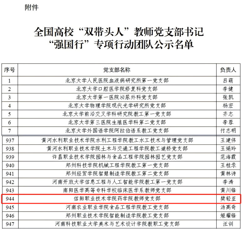 近日,教育部思想政治工作司公示了遴选产生的全国高校“双带头人”教师党支部书记“强国行”专项行动团队名单,公司樊轻亚教授“双带头人”书记工作室成功入选。这是公司在国家级党建荣誉上的第一次突破。